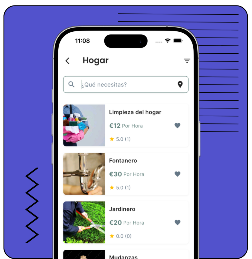 Descarga la app y encuentra una amplia variedad de servicios: desde profesionales del hogar, organización de eventos, clases y talleres, hasta cuidado de mascotas o especialistas en salud como quiroprácticos.